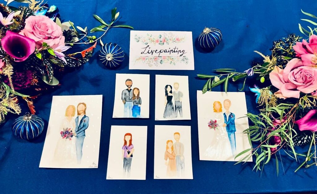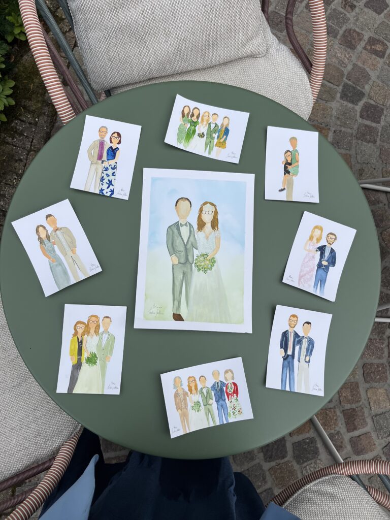 Sollte es euer Wunsch sein, dass all eure Gäste ein kleines Kunstwerk bekommen, besteht die Möglichkeit die restlichen Gäste als Auftragsmalerei von mir im Atelier anfertigen zu lassen. Ich sende euch die Bilder dann im Nachgang zu. Pro Bild (2 Personen) wären es 20€ inklusive Versand.