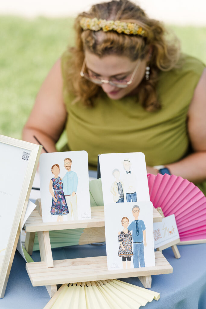 ✔ Live-Illustrationen – Ich portraitiere Deine Gäste live vor Ort – in der Regel etwa 10 Personen pro Stunde.