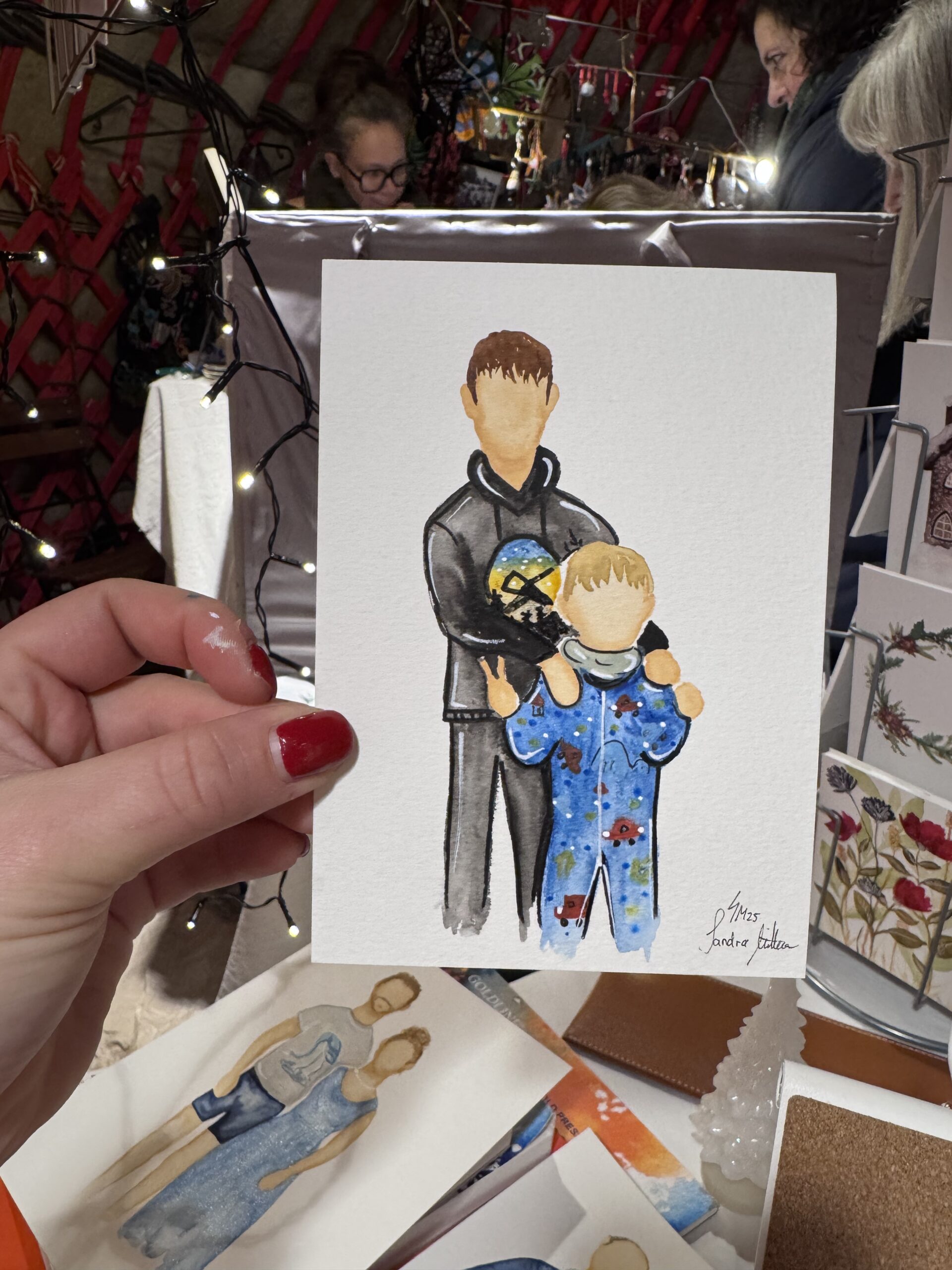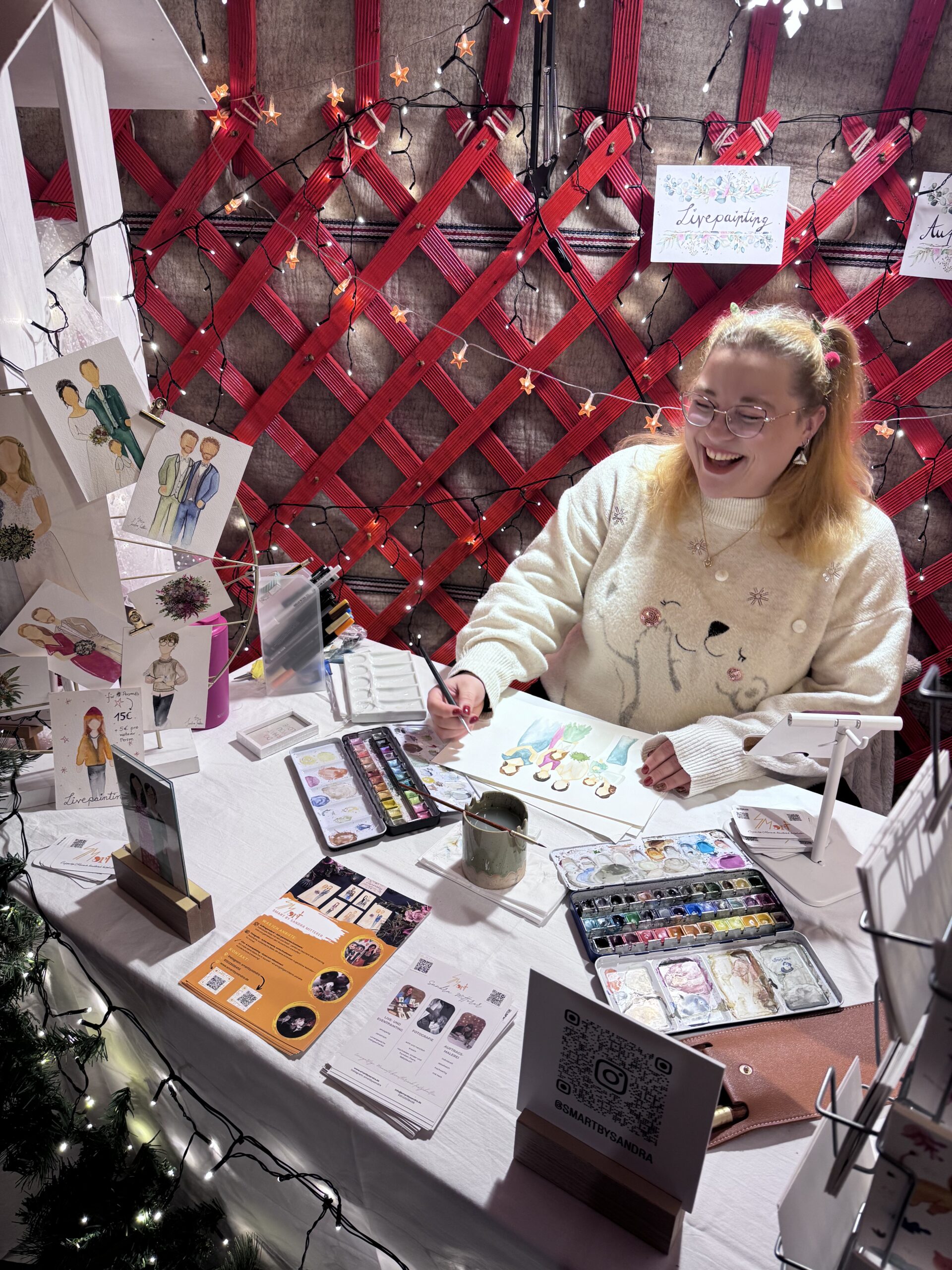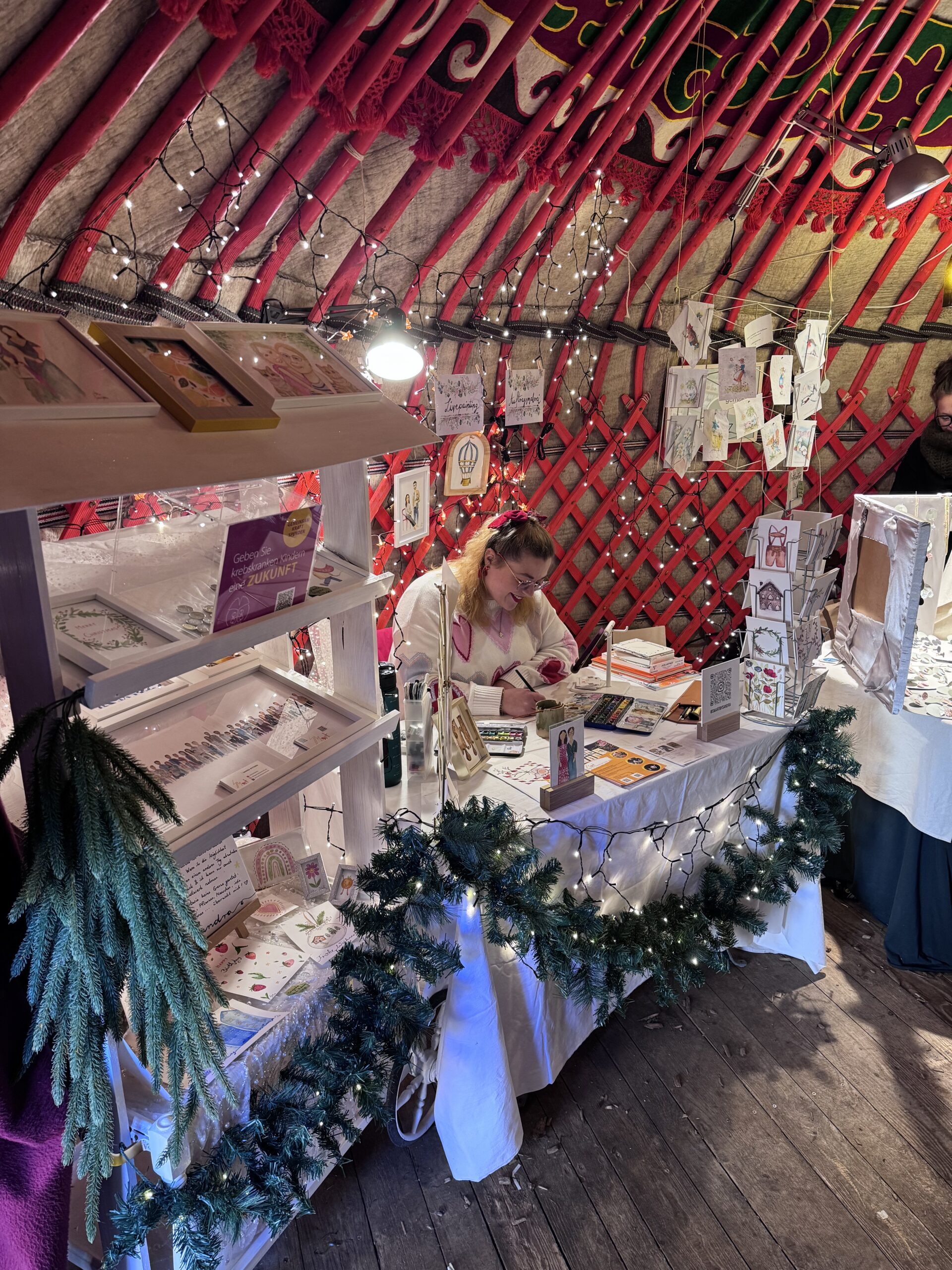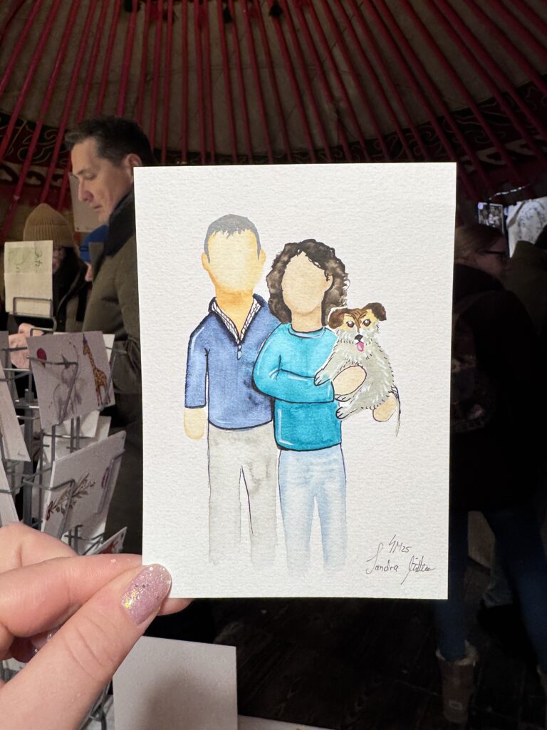 Vom 15.-23.12.25 habe ich wieder im „Gans Woanders“ in München für die Gäste des Weihnachtsmarktes illustriert und Aufträge gemalt.