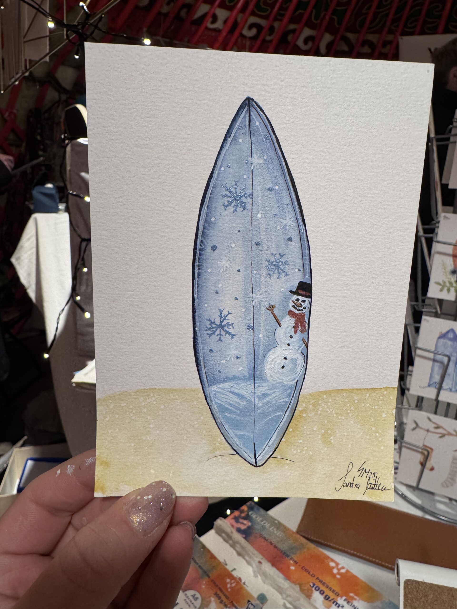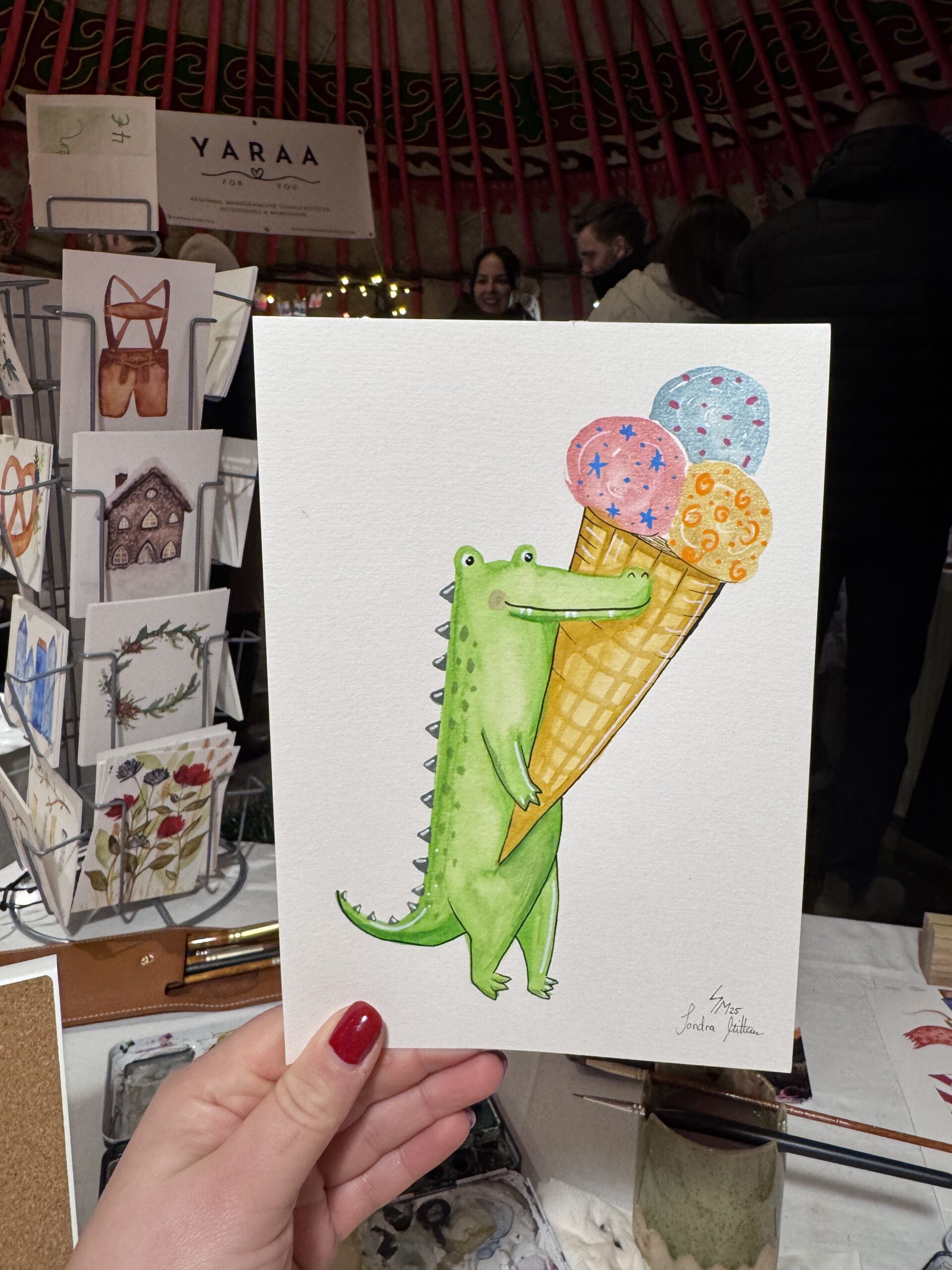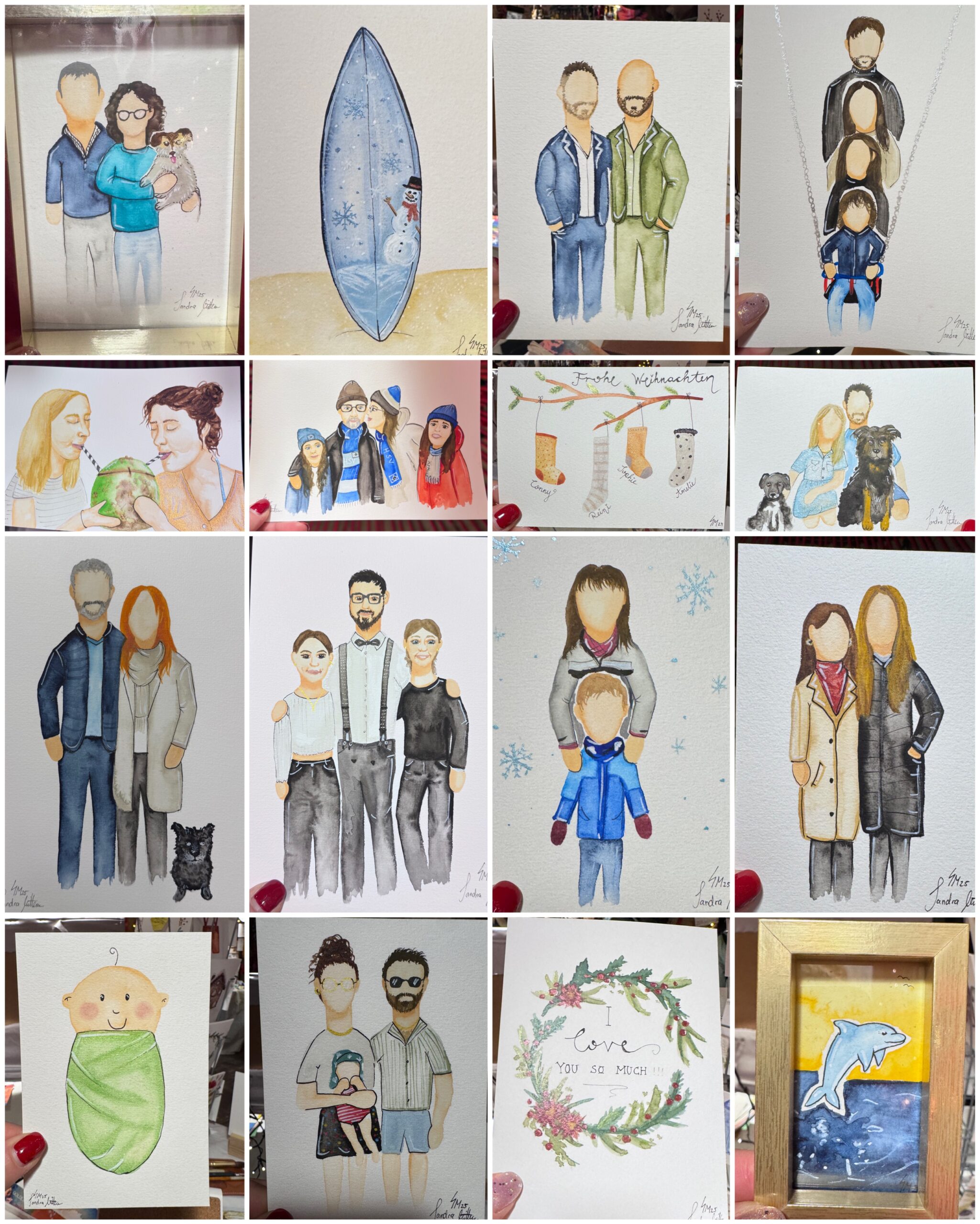 Vom 15.-23.12.25 habe ich wieder im „Gans Woanders“ in München für die Gäste des Weihnachtsmarktes illustriert und Aufträge gemalt.