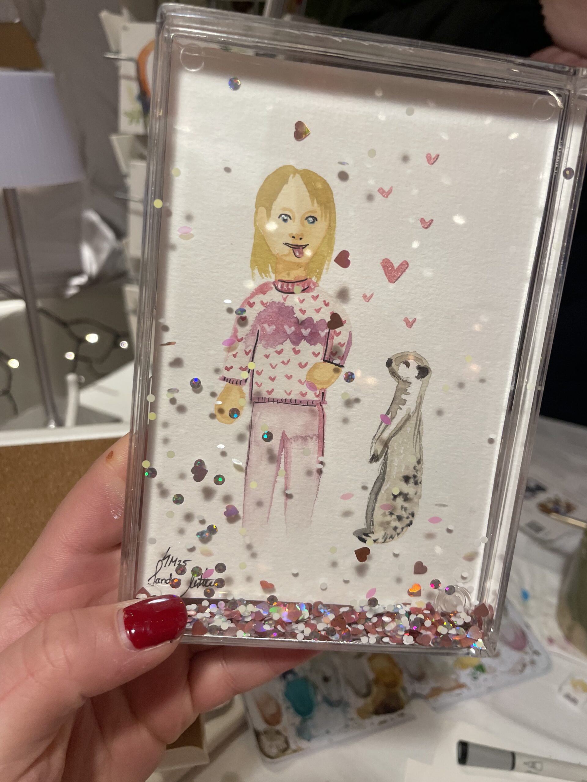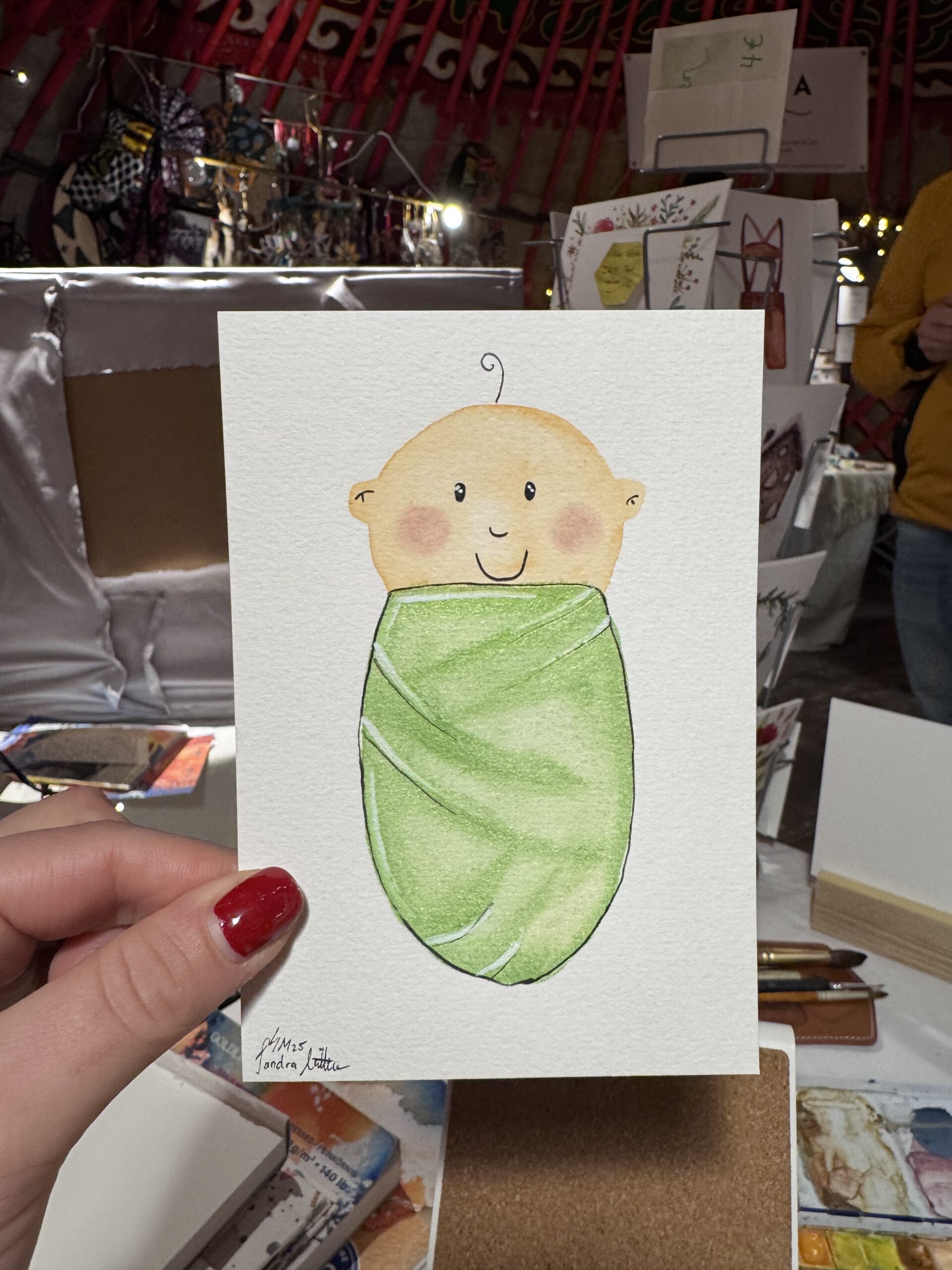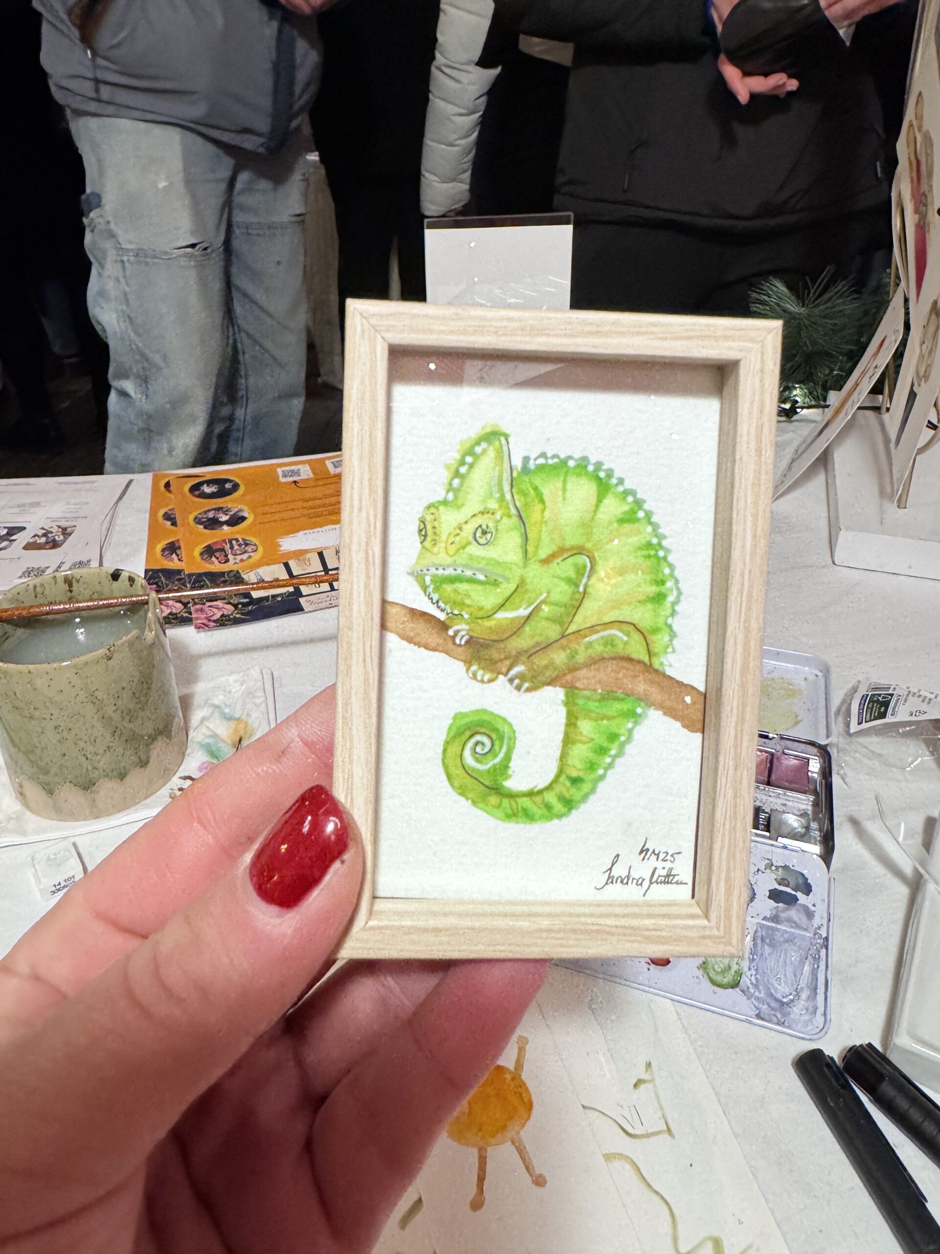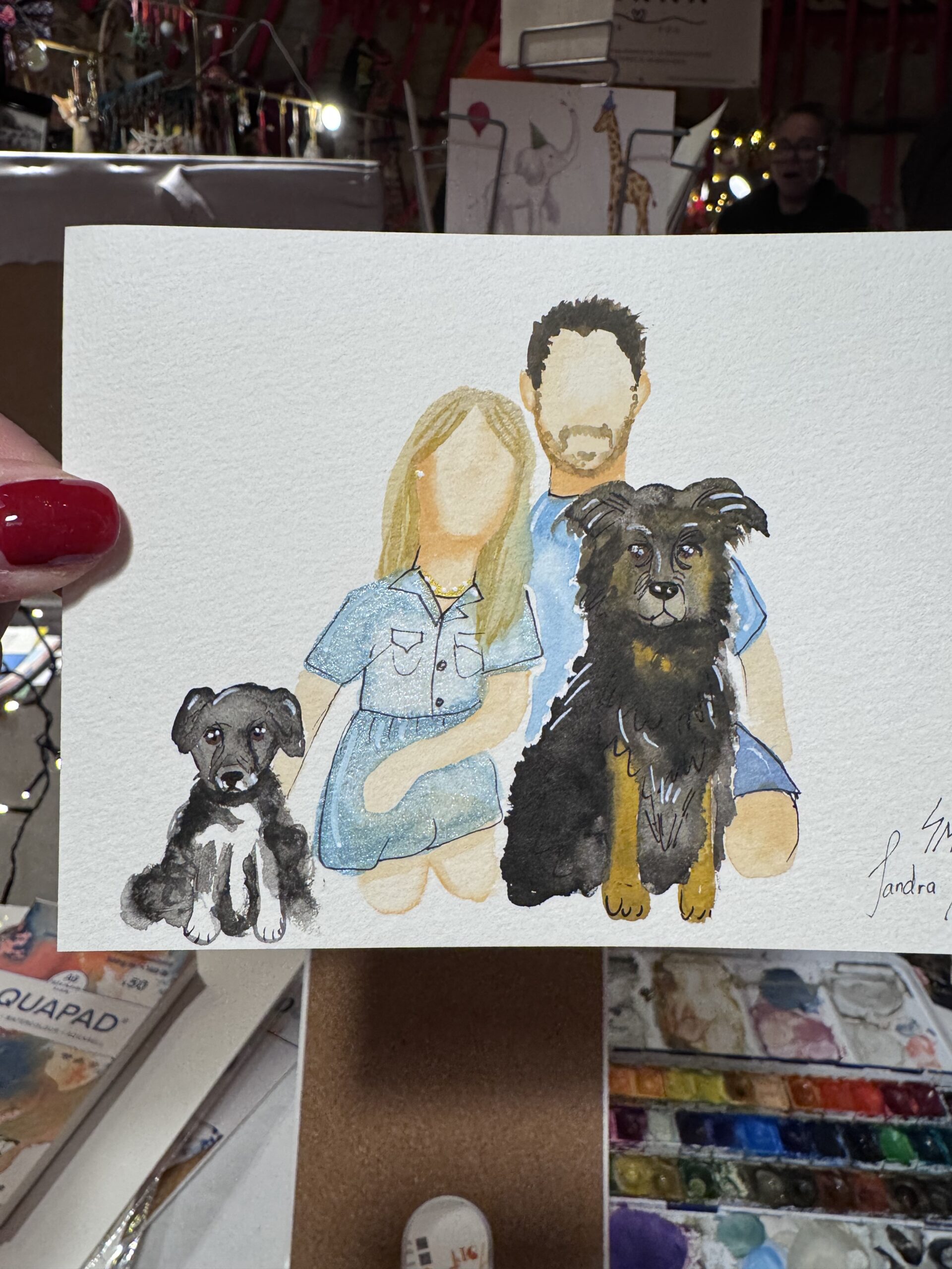 Vom 15.-23.12.25 habe ich wieder im „Gans Woanders“ in München für die Gäste des Weihnachtsmarktes illustriert und Aufträge gemalt.